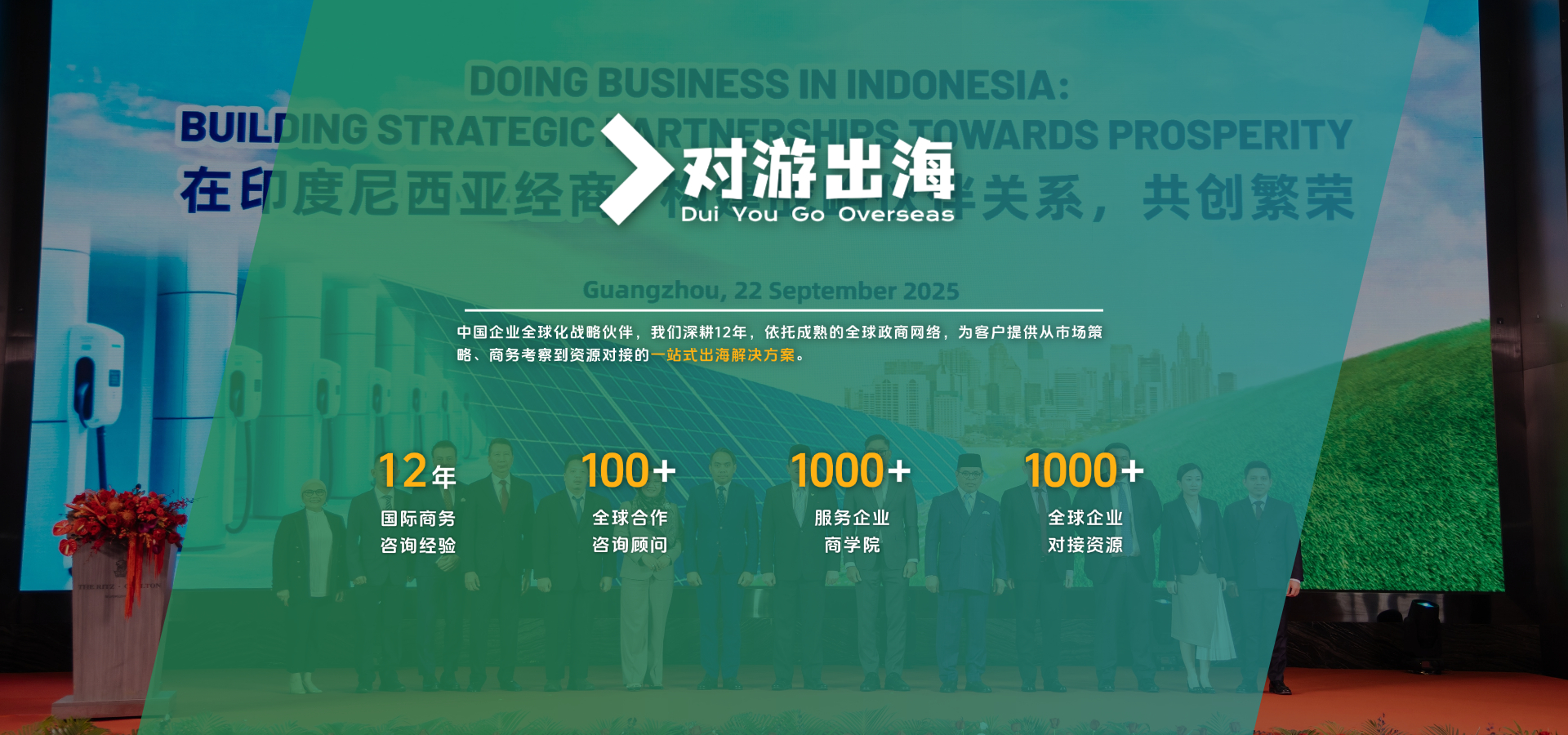 中国企业全球化战略伙伴,深耕12年,依托成熟的全球政商网络,为客户提供从市场策略、商务考察到资源对接的一站式出海解决方案。
